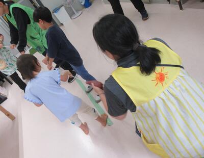 6月26日、げんきっこ運動会が行われ、さまざまな競技を通して日頃の学習の成果を発揮しました。小学部の表現「よっちょれよっちょれよっちょれやー!」では、鳴子を手に、よさこいの踊りを披露しました。始めは振りを覚えることに必死でしたが、練習を重ねるごとにリズムに乗って踊ることを楽しむ様子が見られました。最後の「どっこいしょー!」の動きがバッチリ決まり、観客のみなさんから大きな拍手が起こりました。幼稚部の 「はしれ、もこもこ」では、一生懸命ゴールに向かって走った後、音楽に合わせて踊りました。腰を振る様子がとてもかわいらしかったです。幼児、児童がそれぞれの力を存分に発揮することのできた運動会となりました。