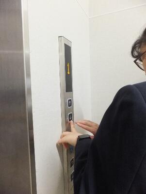 また、校内のエレベーターのボタンには、盛り上がった数字と点字の数字、「あけ」「しめ」の点字表記とそれが分かる記号がありました。