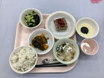夕食には、豆ごはんをはじめとした「豆づくし」の特別献立が並びました。