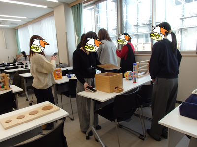 1月26日(月)に視覚障害乳幼児に関わっていらっしゃる関係機関の方を対象に研修会を開催しました。内容は、「視覚障害体験」と「幼児期に大切にしていること」の講話について幼稚部教諭が担当し、その後、幼稚部を中心に、新しい校舎内を見学していただきました。参加者の方からは、「視覚障害乳幼児の能力を伸ばすことや、自立を促す創意工夫が多くあると感じられた。」「弱視の中でも見えにくさや、見え方が違うこと、手で見ること、聴覚を補うことなど、とても参考になりました。」との感想をいただきました。